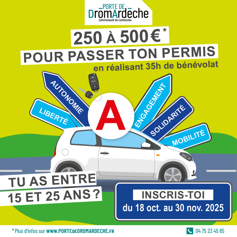 La communauté de communes propose une aide de 250€ à 500€ pour les jeunes de 15 à 25 ans en échange d’un engagement de 35h dans une association ou une commune !
