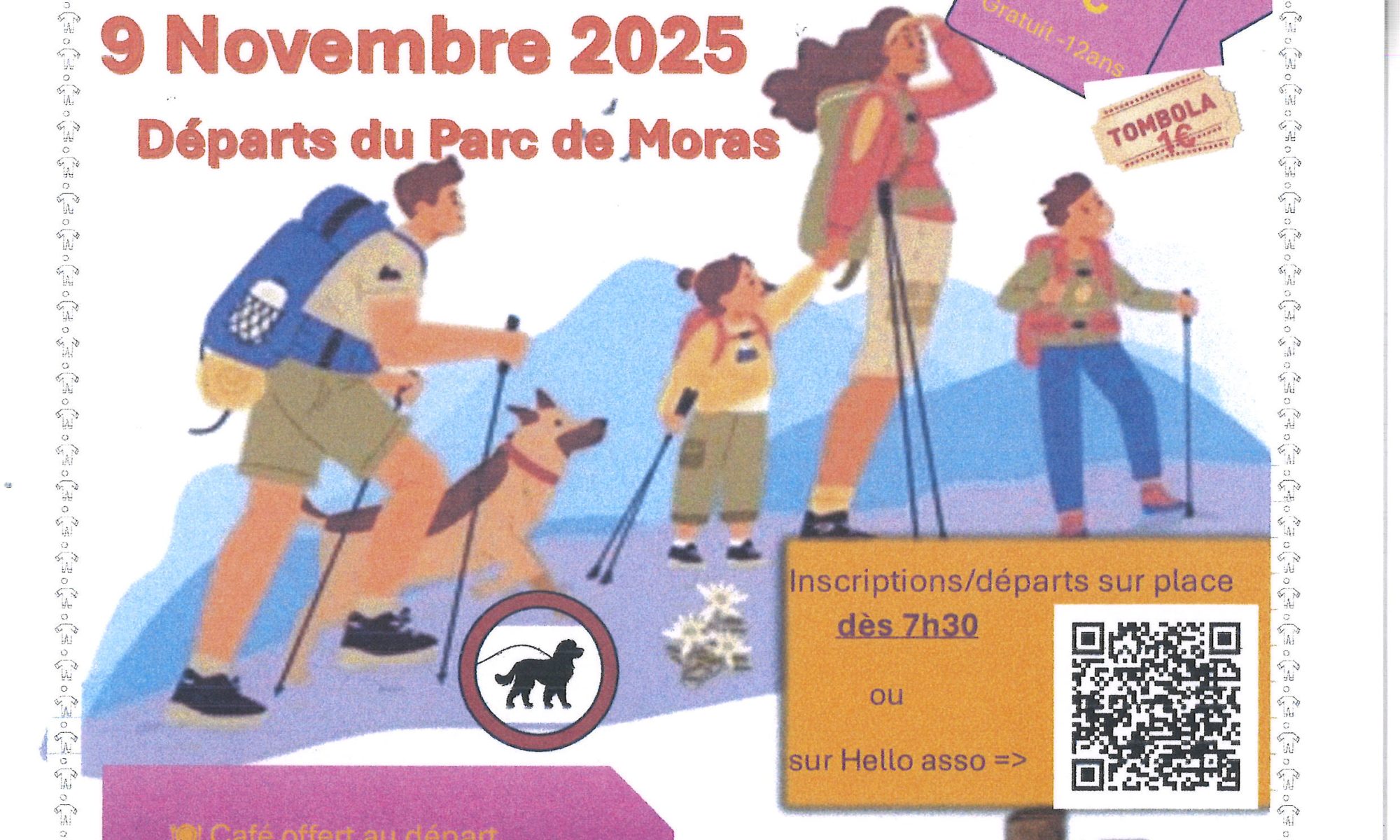Café offert au départ / ravitaillement sur les parcours / ravioles chaudes à l’arrivée / buvette sur place / Produits locaux / Tombola 1 €