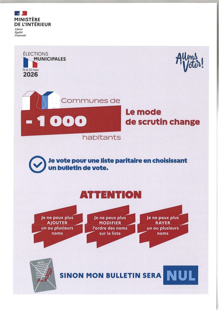 Ces nouvelles dispositions s’appliquent pour les prochaines élections municipales les 15 et 22 mars 2026.