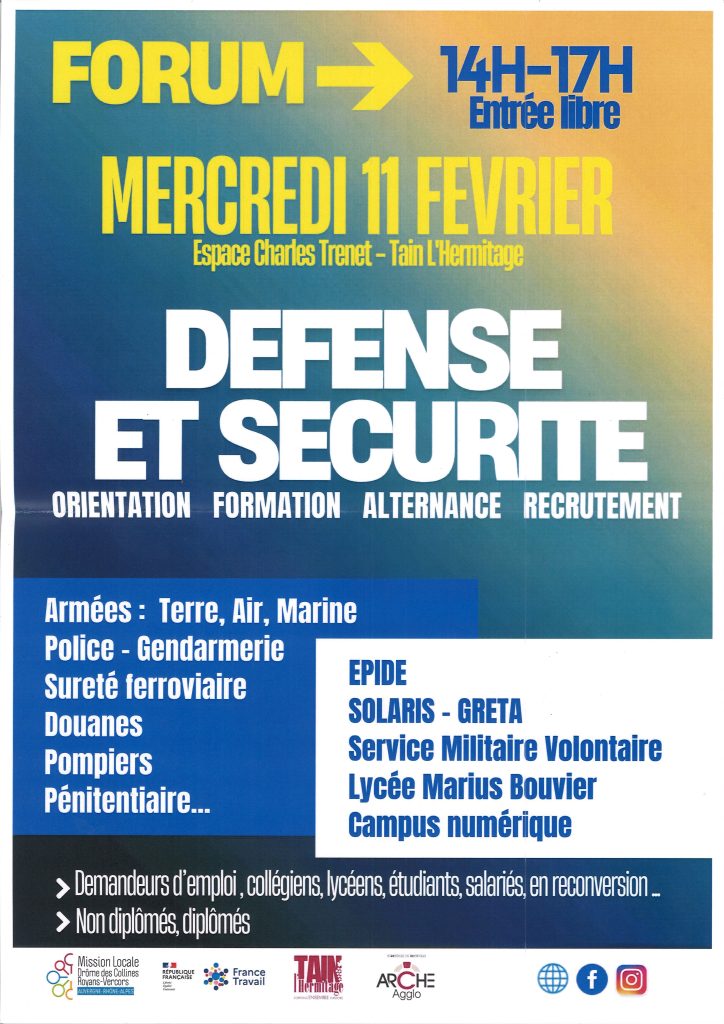La mission locale Drôme des Collines-Royans-Vercors organise son 8ème forum entièrement dédié aux “métiers de la Défense et de la Sécurité”.