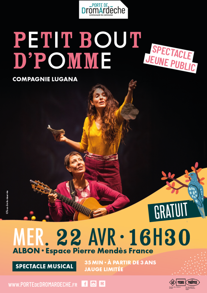 Porte de DrômArdèche donne rendez-vous pour un dernier spectacle dans le cadre de la saison jeune public : Petit bout d’pomme de la compagnie Lugana.